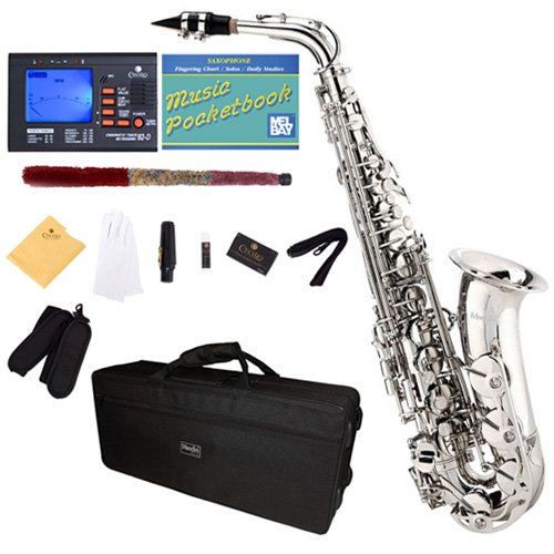 Cheap Price Mendini MAS-N Nickel Plated E Flat Alto Saxophone + Case, Accessories & Free Chromatic Tuner with Metronome