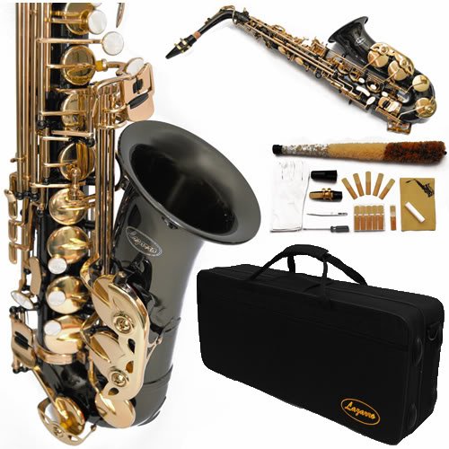 Grand Sale 360-BN - BLACK NICKEL/Gold Alto Sax Saxophone Lazarro+12 Reeds,Music Pocketbook,Pro Case and Care Kit - 12 COLORS Available ! CLICK on LISTING to SEE All Colors